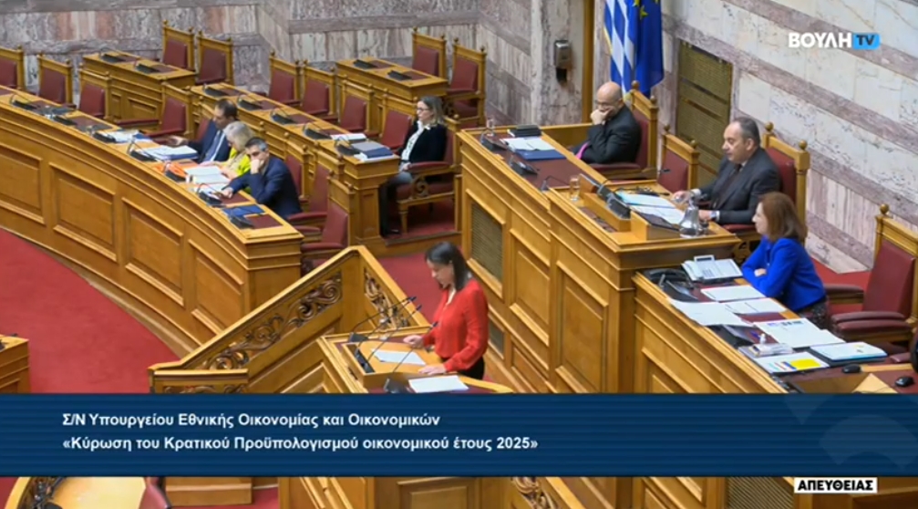 Η κα Κεραμέως αναφέρθηκε στη συνεχώς βελτιούμενη εικόνα της ελληνικής οικονομίας ως αποτέλεσμα «μιας χρηστής δημοσιονομικής πολιτικής των τελευταίων πέντε ετών». « Η Ελλάδα σήμερα εμφανίζει ρυθμούς ανάπτυξης υπερδιπλάσιους της ΕΕ και της ευρωζώνης, ενώ για τη χρονιά που έρχεται αναμένεται να έχουμε το 4ο υψηλότερο πρωτογενές πλεόνασμα όλης της ΕΕ», σημείωσε η Υπουργός η οποία εν συνεχεία παρουσίασε τον προϋπολογισμό του Υπουργείου Εργασίας και Κοινωνικής Ασφάλισης, ο οποίος για το 2025 προβλέπεται στα 18,215 δισ. ευρώ και είναι αυξημένος σε σχέση με τις εκτιμήσεις του 2024 κατά 168 εκ. ευρώ.